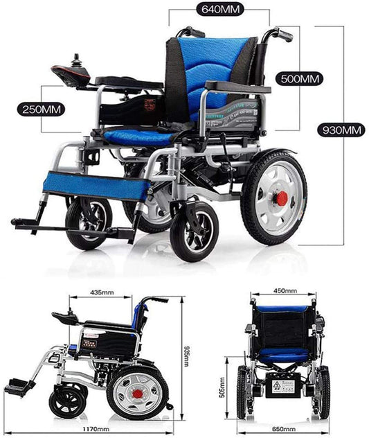 Foldable Electric Wheelchair – Portable Power Chair, 120 kg Capacity, 20 km Range, 250W Motor, Blue